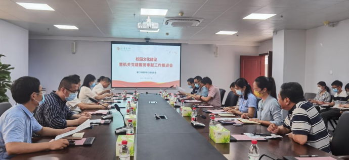 2022年6月21日下午,校党委组织召开校园文化建设暨机关党建服务奉献工作推进会,校党委书记徐志怀出席会议,党委委员、各党总支书记、各学院支部书记代表、行政党总支支部书记、教工代表等参加会议。会议由校党委宣传部部长孙键主持。
