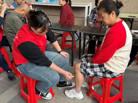 在服务过程中,队员们不仅熟练操作艾灸,为老人们调理身体,更延伸服务内涵,巧妙融入中医养生知识科普、个性化健康咨询以及舒缓疲劳的推拿按摩。他们耐心倾听老人诉求,细致解答健康疑问,用专业的知识和真诚的陪伴,赢得了老人们的连连称赞与灿烂笑容。活动现场始终洋溢着温馨融洽的氛围,充分展现了学院学子良好的精神风貌和扎实的专业功底。