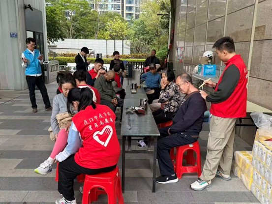 实践队设置流动服务组与定点服务组,三组流动服务组分别走进中央公园、马銮湾一号、建发和玺等社区,将便捷高效的艾灸服务送到老人家门口;定点服务组留守和玺养老服务照料中心,为院内老人提供精细化健康关怀。