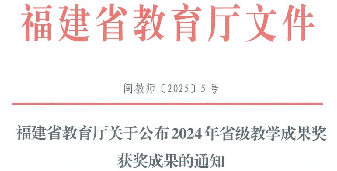 福建省高等教育教学成果奖每两年评选一次,是我省高等教育教学研究和实践领域颁授的最高奖项,是对学校人才培养工作和教育教学改革成果的检阅和展示,旨在奖励在人才培养模式、课程体系、教学内容、教学管理等方面具有原创性、实用性、示范性的教育教学成果。目前,我校已累计获得高等教育省级教学成果奖一等奖和二等奖各2项。此次获此殊荣,是学校坚持内涵发展,高度重视人才培养质量,深化改革创新的集中体现。