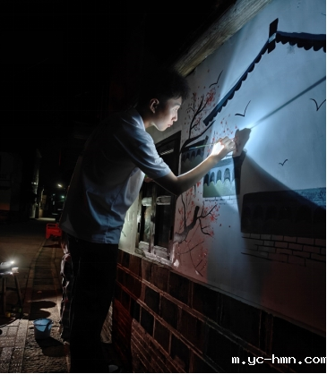 邹家豪给村庄绘制墙绘